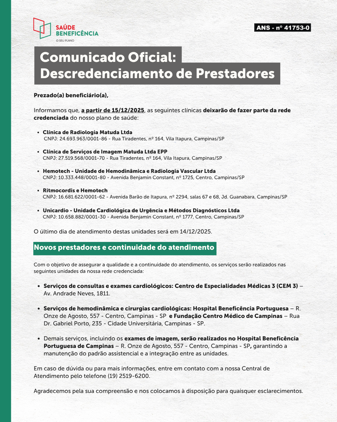 Ver maisInformamos que, a partir do dia 04/04/2022, o novo horário de atendimento para usuário na Emissão de Guias que fica na Rua Tiradentes, nº 181 – Vila Itapura, Campinas-SP passa a ser das 08hs às 17hs.